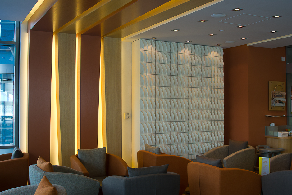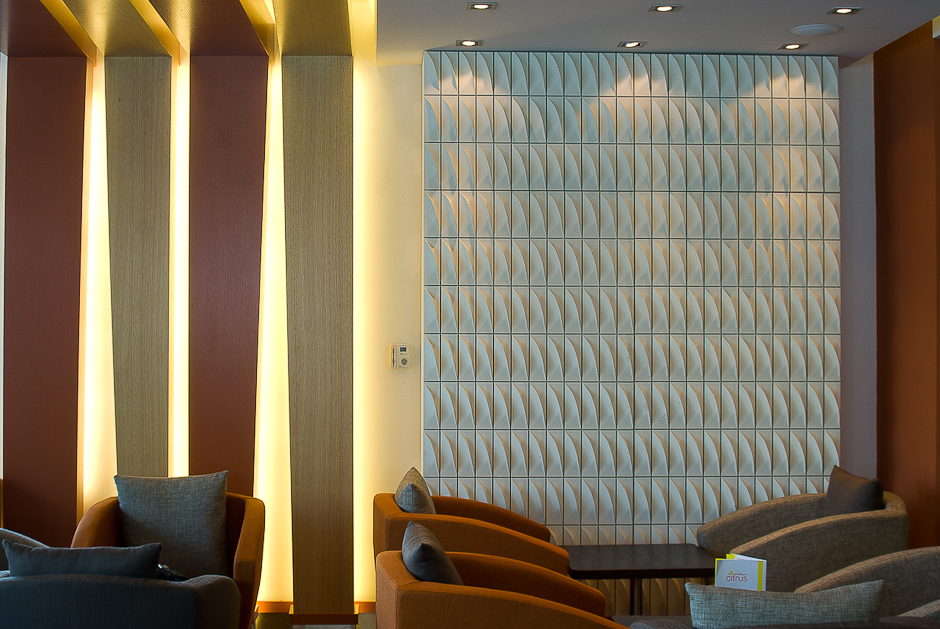 Citrus is a café located in the Deira neighborhood of Dubai, UAE. I was approached with the opportunity to design a feature wall within the space, which was to house the control panels for required services. The clients initially had the desire to put up a sliding brick wall. This would become the point of departure for the design, identifying the inherent difficulties in such a solution, mainly structural and spatial requirements, as well as cost. With local digital fabricators, Signtec, already a part of the construction team, it was feasible to produce a customized piece of geometry for the space. Experimenting with the notion of a brick, a custom undulating block was parametrically designed and iterated, using the Generative Components software, to produce a landscape with 3 axis’ of motion; The third being the diagonal motion of the undulation, also producing shadows at varying depths. The wall is made from a series of CNC milled laminated MDF panels.
